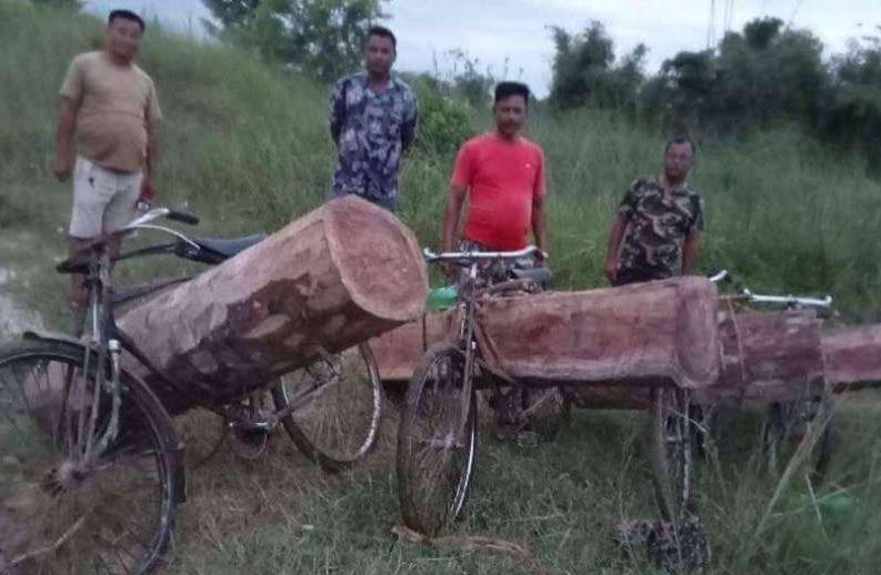सव डिभिजन वन कार्यालय बढनियारबाट खटिएको वन गस्ती टोलीले वडा नम्बर ३ स्थित जुस फ्याक्ट्री पछाडिको झाडीबाट बुधवार बिहान ४.३० बजे काँचो सालको काठ ४ थान र साइकल ४थान बरामद गरेको हो।