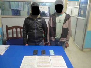 वीरगंज, १८ पुस । जिल्ला प्रहरी कार्यालय, पर्साले आन्तरिक राजस्व विभागको नक्कली स्टिकरसहित दुईजनालाई पक्राउ गरेको छ । बारा विश्रामपुर गाउँपालिका वडा नं.५ घर भई हाल हाल वीरगञ्ज महानगरपालिका वडा नं. १५ त्रिशुल चोक बस्ने वर्ष २७ को मनिष कुमार साह तेली र वर्ष २५ को रंजन कुमार रामलाई प्रहरीले गोप्य सूचनाको आधारमा वीरगंज–१६ बाट पक्राउ गरेको जिप्रका, पर्साले जनाएको छ । उनीहरुको साथबाट आन्तरिक राजश्व विभागको लिक्युर २५ युपी ३७५ एमएल लेखिएको स्टिकर ३९ वटा र छायाकपी पाना फेला परेको प्रहरीले जनाएको छ । प्र.२–०३–००८ प २६६९ नम्बरको मोटरसाइकलमा भारतको रक्सौलबाट वीरगञ्जतर्फ आइरहेका यी दुवैजनालाई आन्तरिक राजश्व विभागको किर्ते तवरबाट तयार गरिएको स्टिकर गोजीमा लुकाएर वीरगंज आउनेक्रममा पक्राउ गरी पर्सा जिल्ला अदालतबाट सात दिनको म्याद थमाइ अनुसन्धान भइरहेको प्रहरीले जनाएको छ ।