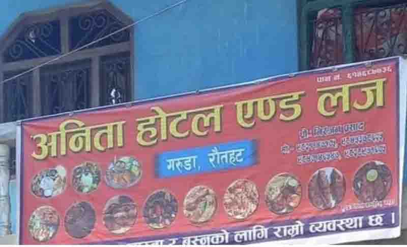 विशेष सूचनाको आधारमा जिल्ला प्रहरी कार्यालय गौर र इलाका प्रहरी कार्यालय गरूडाबाट गएको संयुक्त टोलीले गरूडा स्थित अनिता होटेल एण्ड लजमा छापामारी होटेल सञ्चालकसहित ७ जनालाई नियन्त्रणमा लिएको हो।