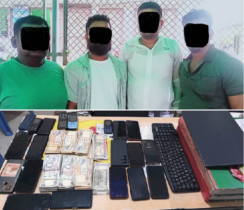 बुधवार राति वीरगंज महानगर–१५ स्थित सञ्जय श्रीवास्तवको तीन तल्ले घरमा मुम्बइ इन्डियन भर्सेज लखनउ सुपर गैन्ड आइपिएल क्रिकेट खेलको सट्टाबाजी गराइरहेको आरोपमा चारजनालाई पक्राउ गरिएको जिल्ला प्रहरी कार्यालय, पर्साले जनाएको छ ।