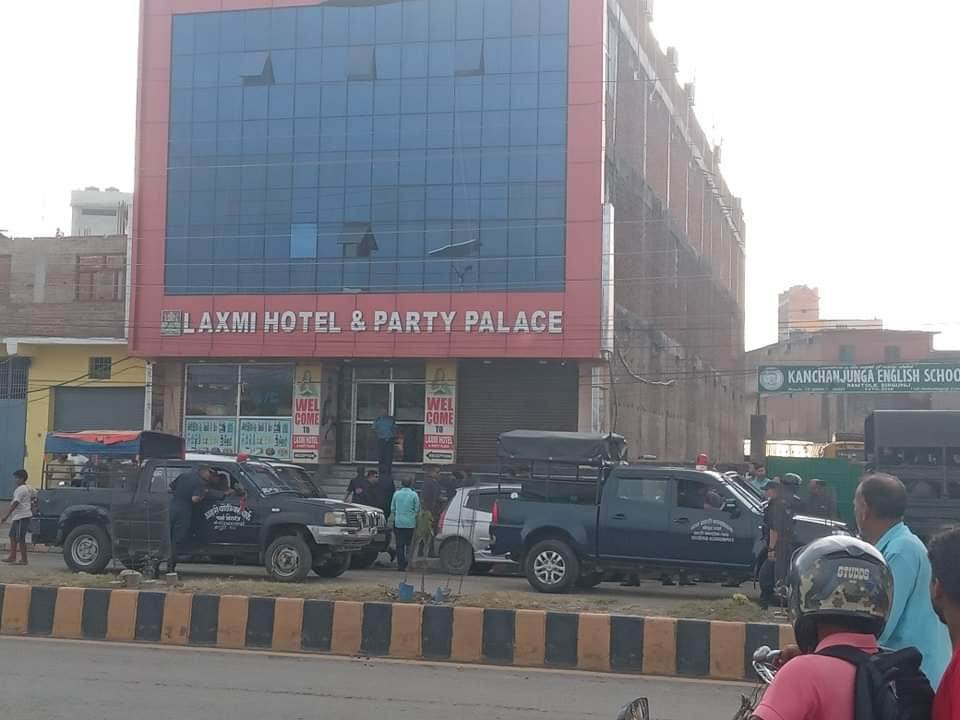 प्रस, वीरगंज, १२ जेठ/ वीरगंज महानगरपालिका–१५ बसपार्कस्थित होटेल लक्ष्मी एण्ड पार्टी प्यालेसमा प्रहरीले छापा मारी होटल सञ्चालकसहित आठ जनालाई नियन्त्रणमा लिएको छ ।