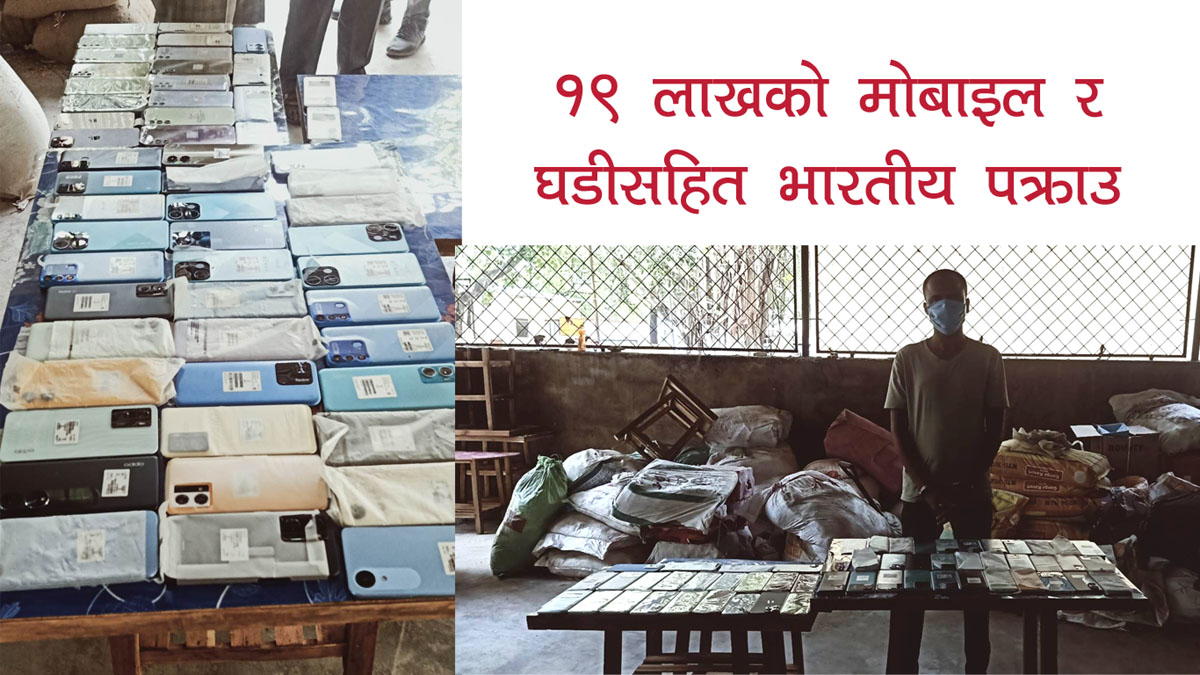 एप्पल, रेडमी, ओप्पो, भिभो, वनप्लस, सामसुङ, रियलमीलगायत कम्पनीका मोबाइल ५९ थान र घडी १८५ थान बरामद भएको प्रहरीले जनाएको छ । बरामद सामान १९ लाख १४ हजार मूल्य बराबरको रहेको र कारबाइको लागि आज वीरगंज भन्सार कार्यालय बुझाइएको जिप्रका, पर्साले जनाएको छ ।