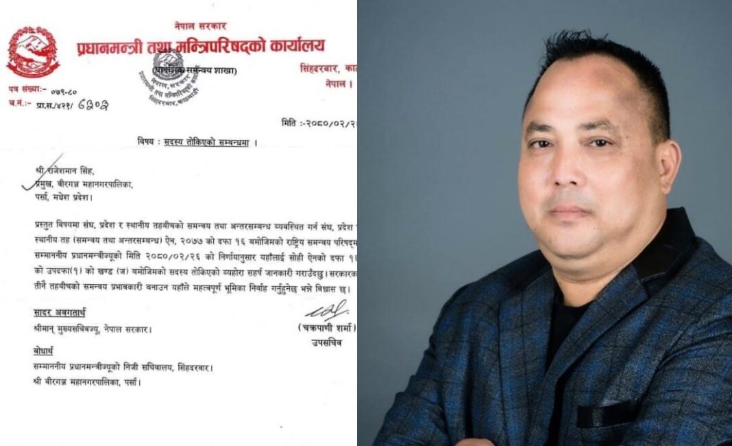 वीरगन्ज, ७ असार: वीरगन्ज महानगरपालिकाका मेयर राजेशमान सिंह राष्ट्रिय परिषद् सदस्यमा नियुक्त भएका छन् ।