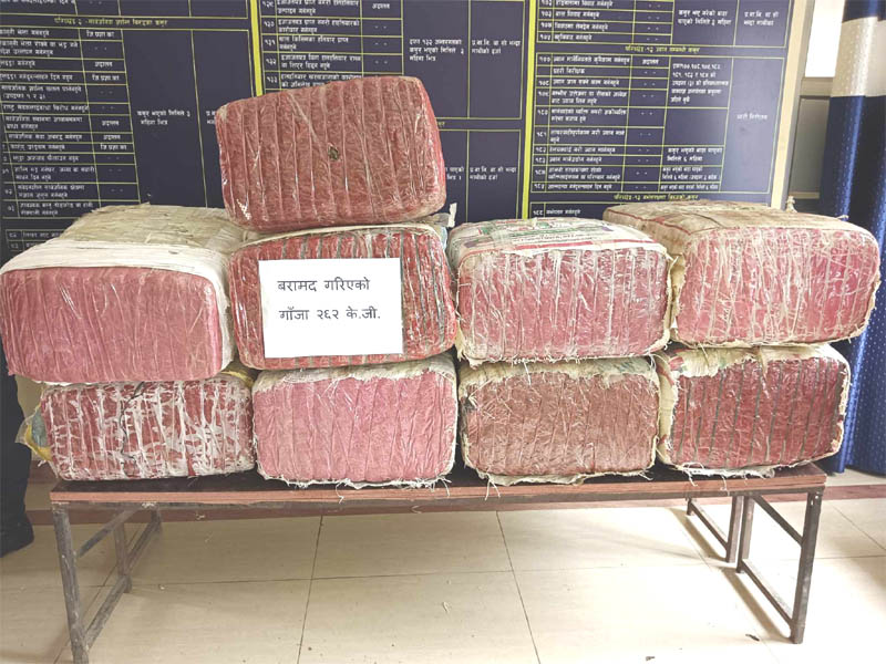बिहीवार जीतपुरसिमरा उपमहानगरपालिका–७ जीतपुर सडकखण्डमा पार्किङ गरिएको बिआर–२५ जिए १४५८ नम्बरको ट्रक चेकजाँच गर्ने क्रममा ट्रकमा फल्स बटम बनाइ लुकाएर राखिएको २६२ किलो गाँजा बरामद भएको जिल्ला प्रहरी कार्यालय, बाराका प्रवक्ता प्रहरी नायब उपरीक्ष्Fक पुरुषोत्तम पाण्डेले बताए ।