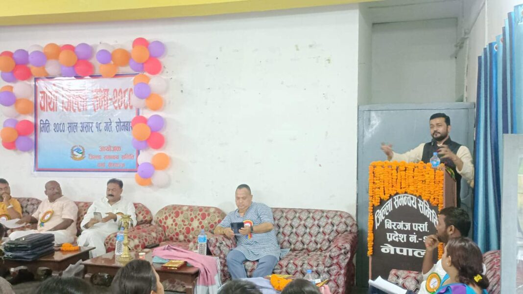 जिल्ला समन्वय समिति पर्साका प्रमुख निरन्जन साह सोनारको अध्यक्षतामा भएको कार्यक्रममा प्रतिनिधि सभा सदस्य राजकुमार गुप्ता, महानगरप्रमुख राजेशमान सिंहलगायतको उपस्थिति रहेको थियो ।