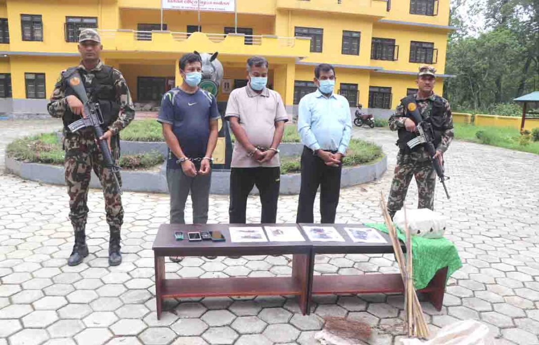 निकुञ्जले आज कसरामा पत्रकार सम्मेलन गरी पक्राउ परेकालाई सार्वजनिक गरेको हो । निजहरुलाई वैशाख १२ गते पक्राउ गरिएको थियो । पक्राउपर्नेमा नवलपरासीको रामग्राम नगरपालिका–१८ धरमपुरका होमबहादुर विक, सोही ठाउँका कृष्णबहादुर महतो र शिखाराम थारु रहेका निकुञ्जका प्रमुख संरक्षण अधिकृत डिलबहादुर पुर्जा पुनले जानकारी दिनुभयो । उहाँका अनुसार गैँडाको खाग खरिदबिक्री कारोबार गर्दै गर्दा निजहरुलाई पकाउ गरिएको थियो ।