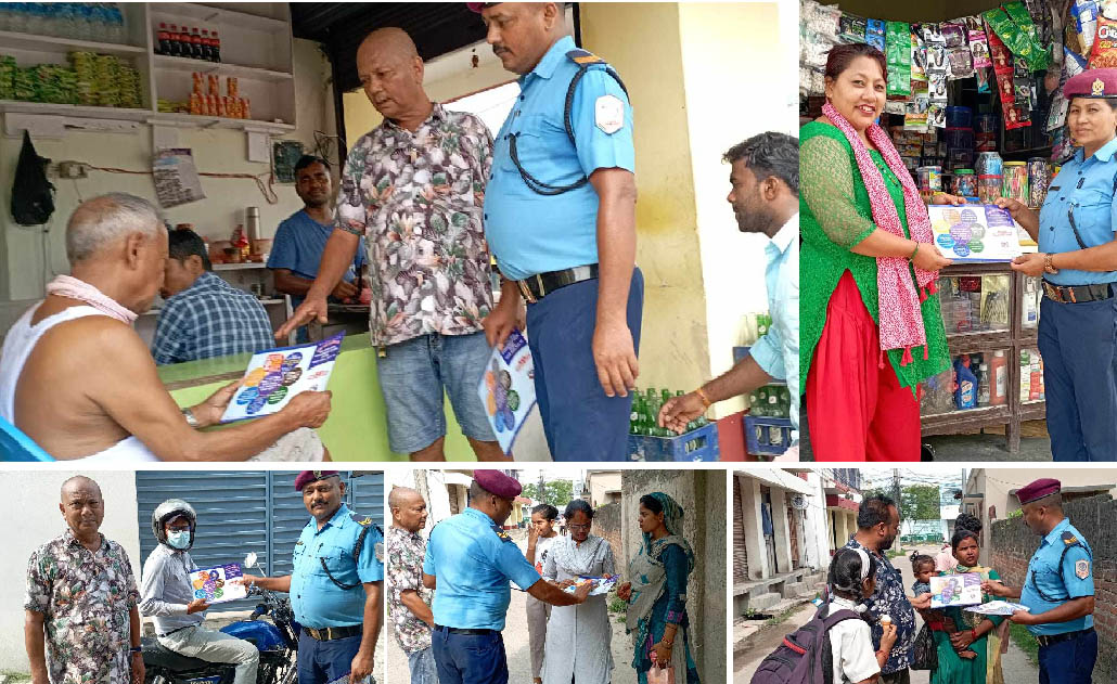 सामुदायिक प्रहरी साझेदारी कार्यक्रम अन्तर्गत सामुदायिक सेवा केन्द्र श्रीपुरले वीरगंज–११ ले वीरगंज महानगर–१३ स्थित तेजारतटोलमा लैङ्गीक हिंसा सम्बन्धी र एकद्वार संकट व्यवस्थापन केन्द्र जानकारी सम्बन्धी पर्चा पम्पलेट वितरण गरेको हो ।