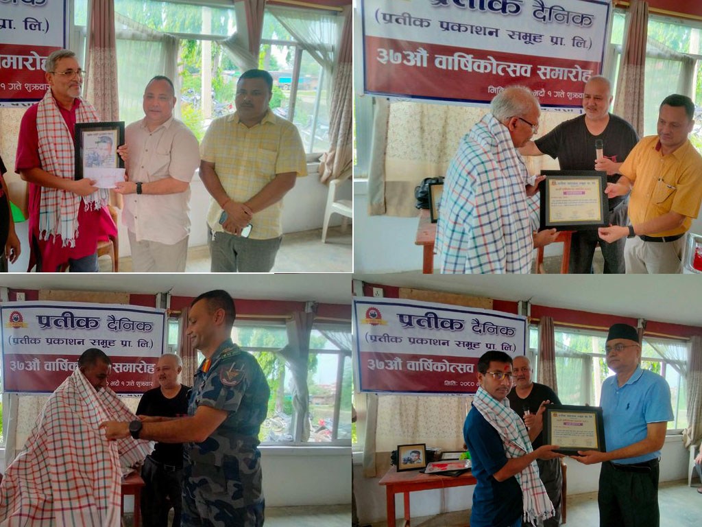 प्रतीक दैनिक ३६ औं वर्ष पूरा गरी ३७औं वर्षमा प्रवेश गरेको अवसरमा विभिन्न व्यक्तिलाई सम्मानित गरिएको छ भने स्व सुबोध सिंह स्मृति पुरस्कारबाट पत्रकार चन्द्रकिशोर झा सम्मानित भएका छन् ।