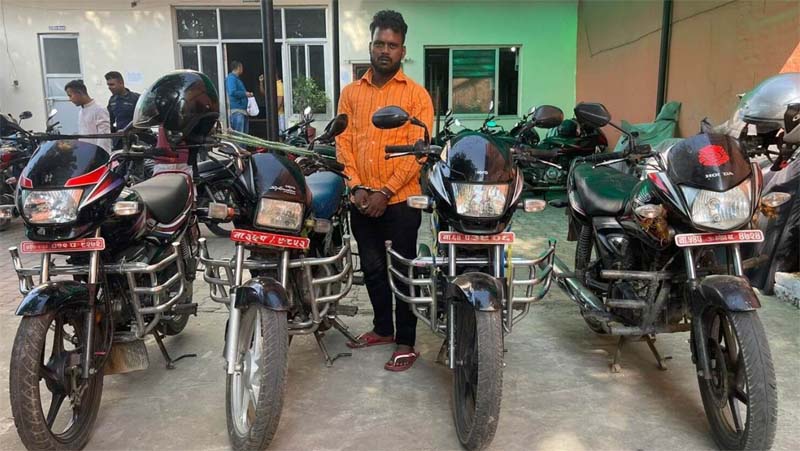 वीरगंज, ३ कार्तिक । वीरगंज महानगरमा एकै दिनमा चार वटा मोटरसाइकल चोरी गरेको आरोपमा एकजना युवक पक्राउ परेका छन् ।