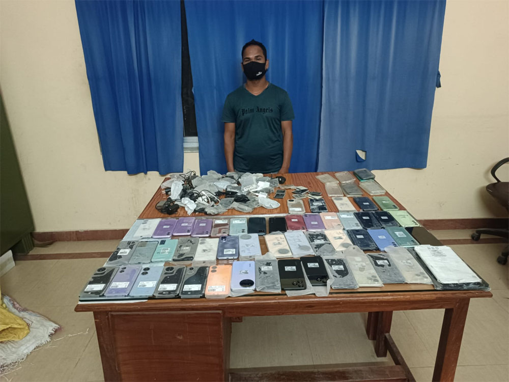 उनको साथबाट विभिन्न कम्पनीका ५१ थान मोबाईल सेटहरू, ४८ थान चार्जर, ९ थान ब्याट्री र १४ थान मोबाईल कभर फेला परेको उनले बताए ।