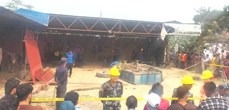 बारा, १४ फागुन । बाराको निजगढ नगरपालिका–७ सहीद चोकमा आज मध्याह्न सिलिन्डर पड्किँदा वर्कसपका सञ्चालक निजगढ नगरपालिका ९ का रेसम मगरको मृत्यु भएको छ । मगरले सञ्चालन गरेको रोहित वर्कसपमा काम गर्दै गरेका बेला अचानक सिलिन्डर विस्फोट हुँदा रेशमसहित पाँच जना घाइते भएका हुन् ।