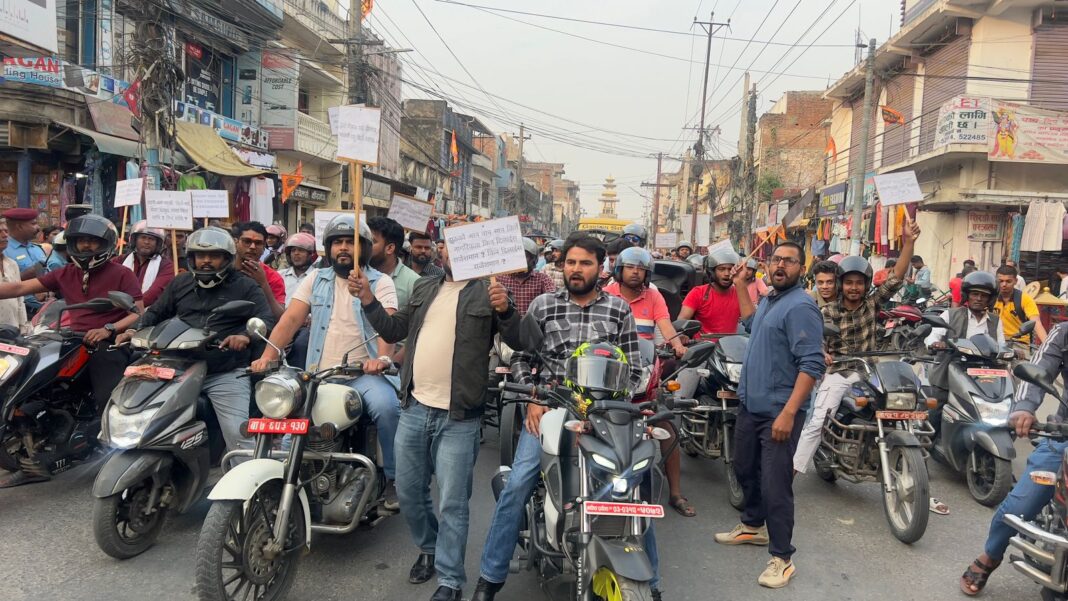 वीरगंज चैत ६, २०८० नागरिकता किर्ते प्रकरणमा मेयर राजेशमान सिंहलाई कारबाहीको माग गर्दै वीरगंजमा मोटरसाईकल र्याली निकालिएको छ ।