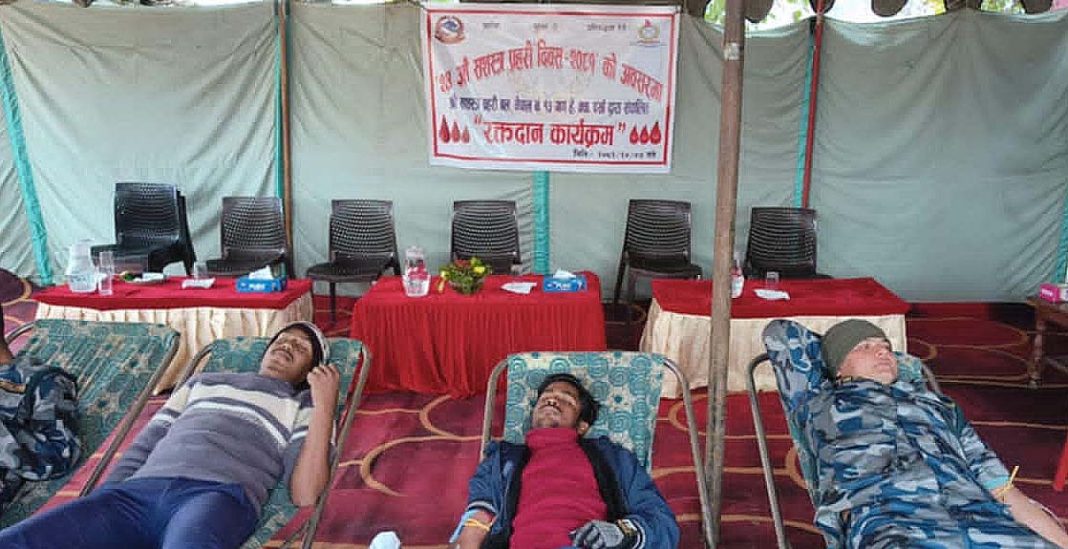 वीरगंज, ७ माघ । २४औं सशस्त्र प्रहरी दिवस २०८१ को अवसरमा सोमवार सशस्त्र प्रहरी बल नेपाल नं. १३ गण हेक्वाटर पर्साले रक्तदान कार्यक्रम सम्पन्न गरेको छ। कार्यक्रममा ५७ जनाले रक्तदान गरेको नेपाल रेडक्रस सोसाइटी वीरगंज रेशमकोठी उपशाखाका युवा संयोजक अभिलाष गुप्ताले जानकारी गराए । कार्यक्रममा अनिल यादव, सञ्जय तामाङ, रोशन थापा, केदार तिमल्सिना, सागर कुमार यादव, अजय प्रसाद यादव, दिगम्बर पाण्डित,राजु पटेल, कमल केसी लगायतकाले रक्तदान गरेका हुन । कार्यक्रममा रक्तसञ्चार केन्द्र वीरगंजका जितेन्द्र कुशवाहाको प्राविधिक सहयोगले सम्पन्न भएको थियोे । कार्यक्रममा प्रमुख अतिथी गणपति सशस्त्र प्रहरी उपरीक्षक राधेश्याम धिमाललगायतको सहभागिता थियो ।