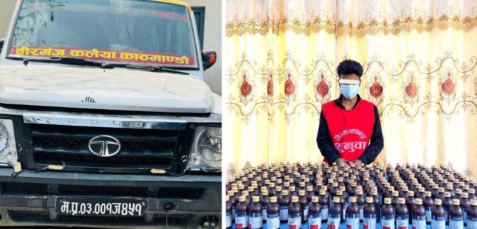 वीरगंज, ९ वैशाख । बाराको अमलेखगन्ज प्रहरीले मधेश प्रदेश ०३–००१ ज ४५१ नम्बरको टाटा सुमोबाट नियन्त्रित औषधिसहित चालकलाई पक्राउ गरेको छ । हेटौंडा उपमहानगरपालिका–१५ रातोमाटेमा चेकजाँच गर्ने क्रममा नियन्त्रित लागूऔषध वानरेक्स एक सय एमएलको २ सय २५ बोतल फेला परेको जिल्ला प्रहरी कार्यालय, मकवानपुरले जनाएको छ। लागूऔषध सहित पर्साको बहुदरमाई नगरपालिका–९ बस्ने २४ वर्षीय मुमताज मियाँलाई प्रहरीले पक्राउ गरेको हो । प्रहरी चौकी रातोमाटेबाट खटिएको प्रहरीले सुमोलाई चेकजाँच गर्ने क्रममा सुमोको हुडको भागमा स्पेयर टायरभित्र प्वाल पारी लुकाई छिपाई राखिएको अवस्थामा नियन्त्रित लागूऔषध वानरेक्स एक सय एमएलको २ सय २५ बोतल फेला परेको जिल्ला प्रहरी कार्यालय मकवानपुरले जनाएको छ ।