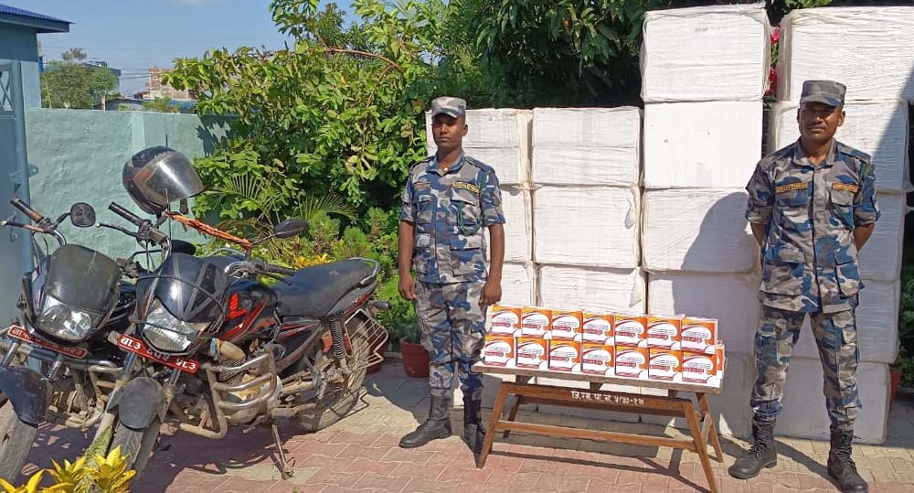 वीरगंज, ३ असार । सशस्त्र प्रहरी बल पर्साले १० लाख १८ हजार मूल्य बराबरको भन्सार छलीको मल्टिभिटामिन टयाबलेट नियन्त्रणमा लिई कारबाहीको लागि वीरगंज भन्सार दाखिला गरेको छ । सशस्त्र प्रहरी बल, नेपाल नं. १३ गण हे.क्वा. पर्साका सशस्त्र प्रहरी निरीक्षक कपिल राज गिरीको कमाण्डमा खटिएको टोलीले वीरगंज म.न.पा.–१ छपकैयामा भारतबाट अवैध रूपमा भन्सार छलि दुई वटा मोटरसाइकलमा लोड गरी वीरगंज ल्याउँदै गरेको १० लाख १८ हजार मुल्य बराबरको रिभिट्रोल–सिएम मल्टिभिटामिन टयाबलेट १०१८ डिब्बा नियन्त्रणमा लिई आवश्यक कारवाहीको लागि वीरगंज भन्सार कार्यालय पर्सामा बुझाएको सूचना अधिकारी सशस्त्र प्रहरी नायब उपरीक्षक देवेन्द्र बहादुर सिंहले जानकारी गराएका छन् ।