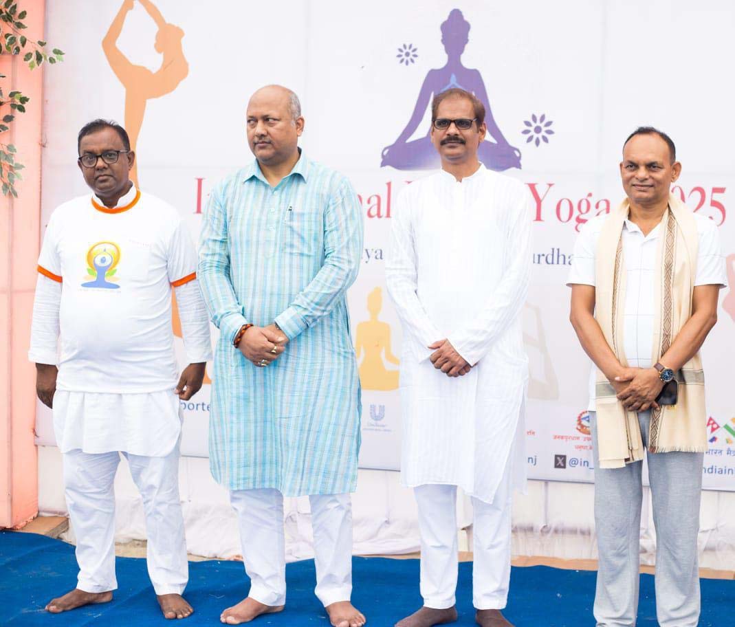 जनकपुरधाम, ५ असार । अन्तर्राष्ट्रिय योग दिवसको अवसरमा भारतीय महावाणिज्य दूतावास, वीरगंजले बिहीवार जनकपुरधामको तिरहुतिया गाछीमा एक भव्य योग शिविरको आयोजना गरेको छ । महावाणिज्य दूतावासद्वारा आयोजित यो शिविर श्रृंखलाको चौथो कार्यक्रम हो । कार्यक्रमका प्रमुख अतिथि मधेश प्रदेशका मुख्यमन्त्री सतीश कुमार सिंहले योगले शारीरिक र मानसिक स्वास्थ्यमा पुर्याउने योगदानवारे चर्चा गर्दै जनकपुरधामजस्तो सांस्कृतिक शहरमा यस्तो कार्यक्रम आयोजना गरेकोमा महावाणिज्य दूतावासलाई धन्यवाद दिए। मधेश प्रदेश सभाका सभामुख रामचन्द्र मण्डल र जनकपुरधाम उप–महानगरपालिकाका मेयर मनोज कुमार साहले योगप्रति जनचेतना फैलाउन तथा नेपाल–भारत सम्बन्ध सुदृढ पार्न महावाणिज्य दूतावासको पहलको सराहना गरे । महावाणिज्यदूत देवी सहाय मीनाले सन् २०१४ मा संयुक्त राष्ट्र संघको महासभामा नेपाल सहित १७७ सदस्य राष्ट्रहरूले सह–प्रायोजित प्रस्ताव पारित भएपछि अन्तर्राष्ट्रिय योग दिवसको शुरूवात भएको जानकारी गराए । उनले समयसँगै योगले भौगोलिक, सांस्कृतिक र भाषिक अवरोधहरू पार गर्दै विश्वव्यापी रूप लिएको बताए । यस वर्षको अन्तर्राष्ट्रिय योग दिवसको मुल नाराः एक पृथ्वी, एक स्वास्थ्यको लागि योग र यसको महत्वको वारेमा पनि जानकारी गराए । कार्यक्रममा प्रदेश सांसद, सरकारी अधिकारी, शिक्षक–विद्यार्थी, पतञ्जलि योग समितिका प्रतिनिधि तथा सर्वसाधारण गरी करीब ७०० जनाको सहभागीता रहेको थियो । नेपाल–भारत मैत्री संघ, पतञ्जलि योग समिति लगायत विभिन्न संस्थाको सहकार्यमा सम्पन्न कार्यक्रम सफल पार्न सहयोग गर्ने सबैप्रति महावाणिज्य दूतावासले आभार प्रकट गरेको छ ।