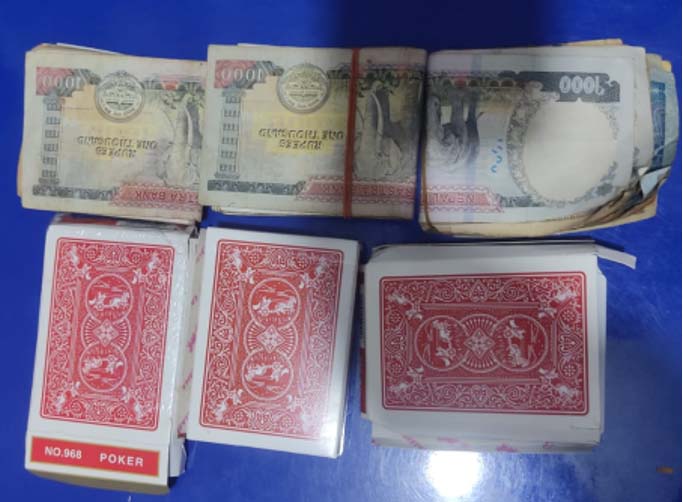 वीरगंज, २७ असोज । पर्सा जिल्ला वीरगंज महानगरपालिका वडा नं. १६ फुलवारी टोल स्थित रोशन रौनियारले सञ्चालन गरेको होटलमा जुवातास खेलिरहेको अवस्थामा तीनजना पक्राउ परेका छन् । असोज २६ गते राति ९ः४५ बजे सूचनाको आधारमा जिल्ला प्रहरी कार्यालय, पर्साबाट खटिएको प्रहरी टोलीले जुवातास खेलिरहेको अवस्थामा वीरगंज महानगरपालिका वडा नं. १६ बस्ने वर्ष २० को रोहित रौनियार, वर्ष ३० को श्यामबाबु राय, वडा नं.१५ बस्ने वर्ष २५ को अनन्त कुमार गुप्ता पक्राउ परेका छन् । साथै जुवाको खालबाट नगद रू. ५० हजार ७५५ र ३ बुक तास सहित बरामद भएको प्रहरीले जनाएको छ । निजहरू विरूद्ध जुवा सम्बन्धी कसूरमा तालुक जिल्ला प्रशासन कार्यालय पर्साबाट दिन पाँच दिनको म्याद थप अनुमति लिइ अनुसन्धान कार्य भइरहेको जिप्रका, पर्साका प्रवक्ता प्रहरी नायब उपरीक्षक किशोर लम्सालले जानकारी गराएका छन् ।